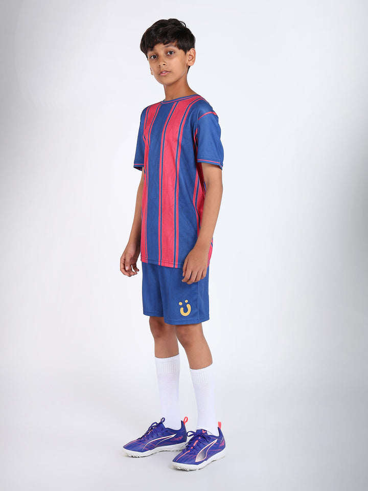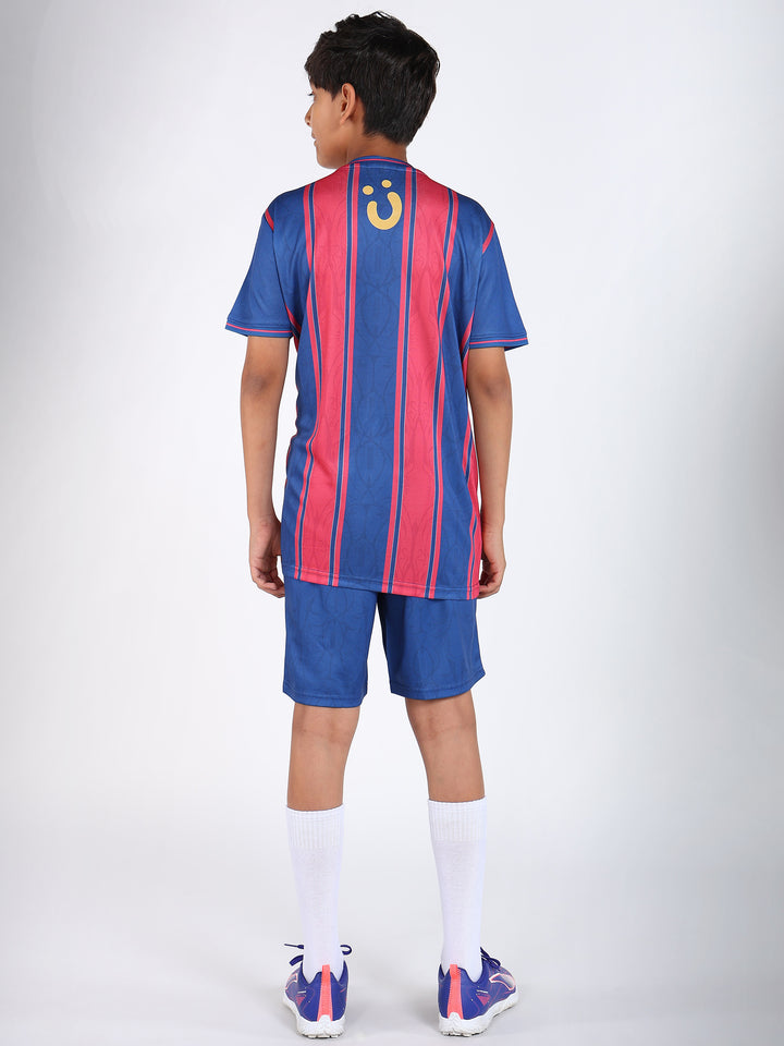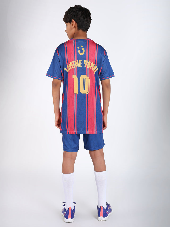 Step into the spotlight with the Boys Barcelona Football Jersey Set! Inspired by one of the world's most legendary football clubs, this vibrant set lets your young athlete showcase their love for the beautiful game. Crafted from lightweight, moisture-wicking fabric, it keeps them cool and comfortable during outdoor matches, training sessions, and gym workouts. The iconic Barcelona colors and design deliver authentic team spirit with every wear. Whether they're practicing their skills or cheering on their heroes, this jersey set combines style, comfort, and durability. Perfect activewear for kids who dream big and play hard!