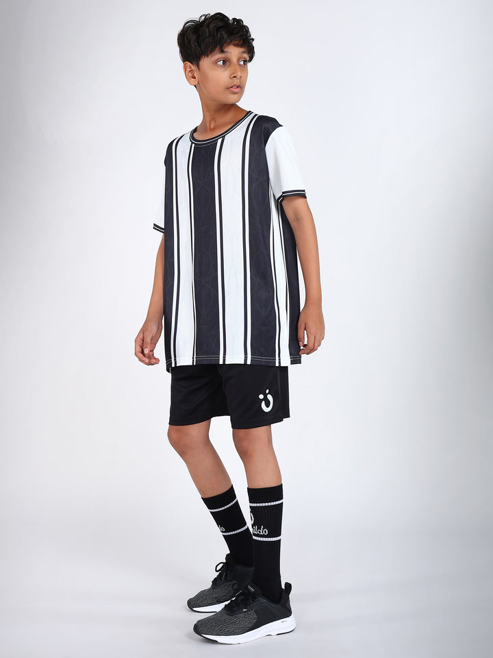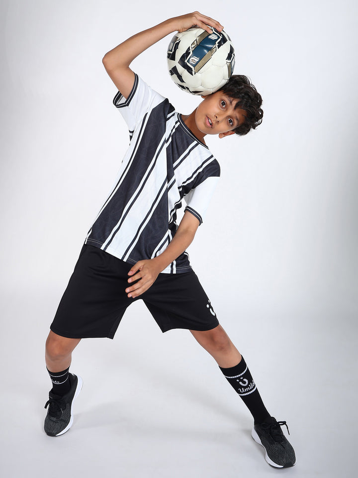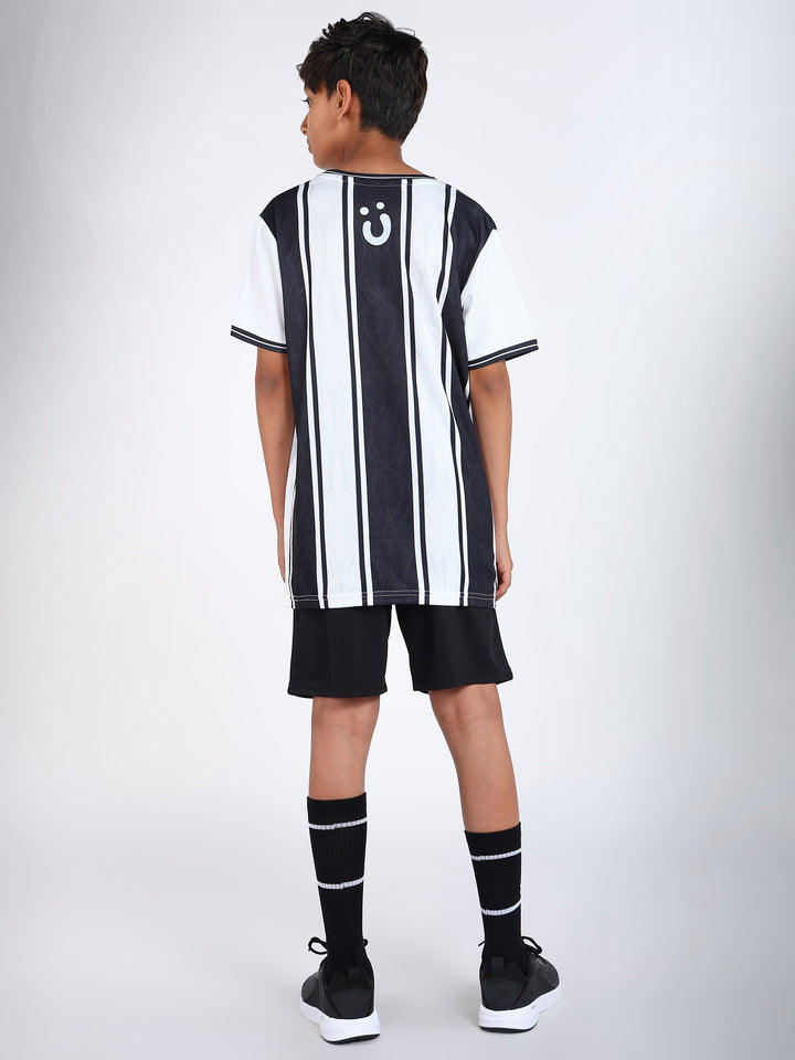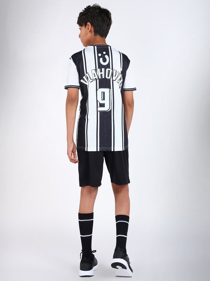 Power up your game with the Boys Juventus Football Jersey Set! Celebrate one of Italy's most prestigious football clubs with this striking set designed for young sports enthusiasts. Engineered with breathable, flexible fabric, it delivers comfort whether your kid is battling it out on the field, hitting the gym, or rocking casual activewear. The classic Juventus stripes and design make a bold statement while keeping them cool during intense action. Durable enough for serious training yet stylish enough for everyday wear, this jersey set is the perfect choice for kids who live and breathe football. Let them wear their passion!