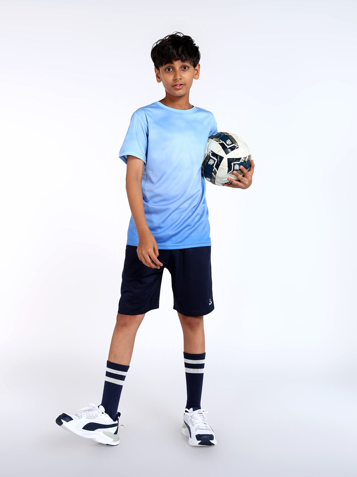 Hit the ground running in the Boys Blue Horizon Tshirt—your go-to gear for outdoor adventures, gym sessions, and everything in between. Crafted for comfort and built for action, this activewear essential keeps up with your active lifestyle whether you're crushing workouts or exploring the great outdoors. The cool blue design brings style to every sport, making it the perfect pick for boys who refuse to slow down. Ready to move? This tee is ready too.