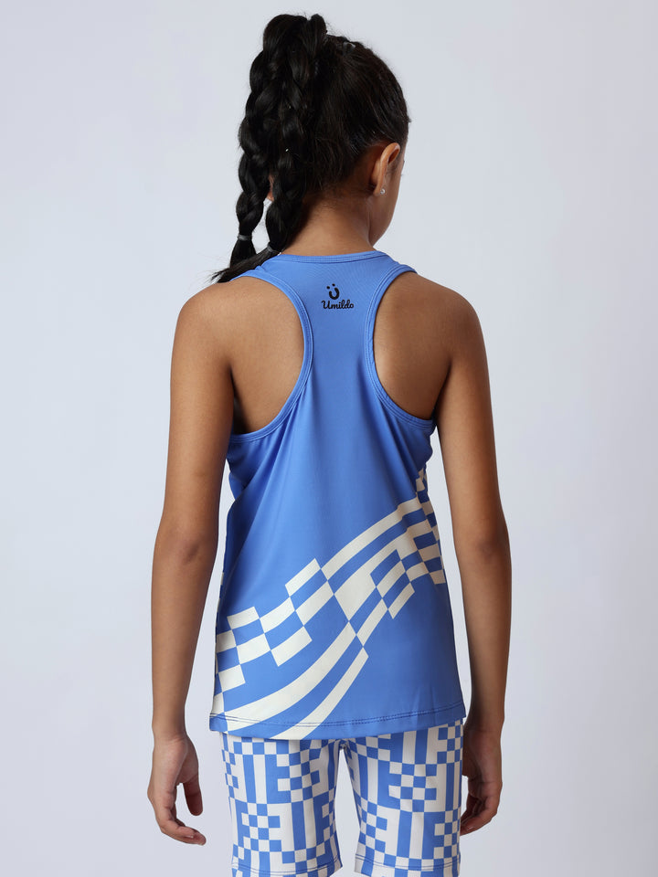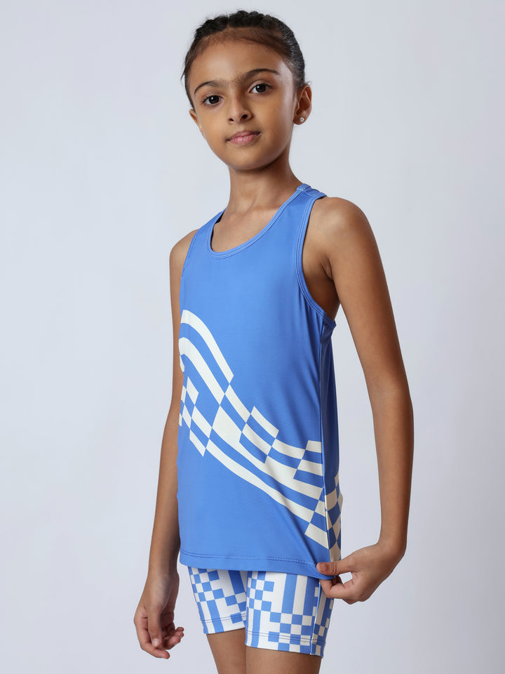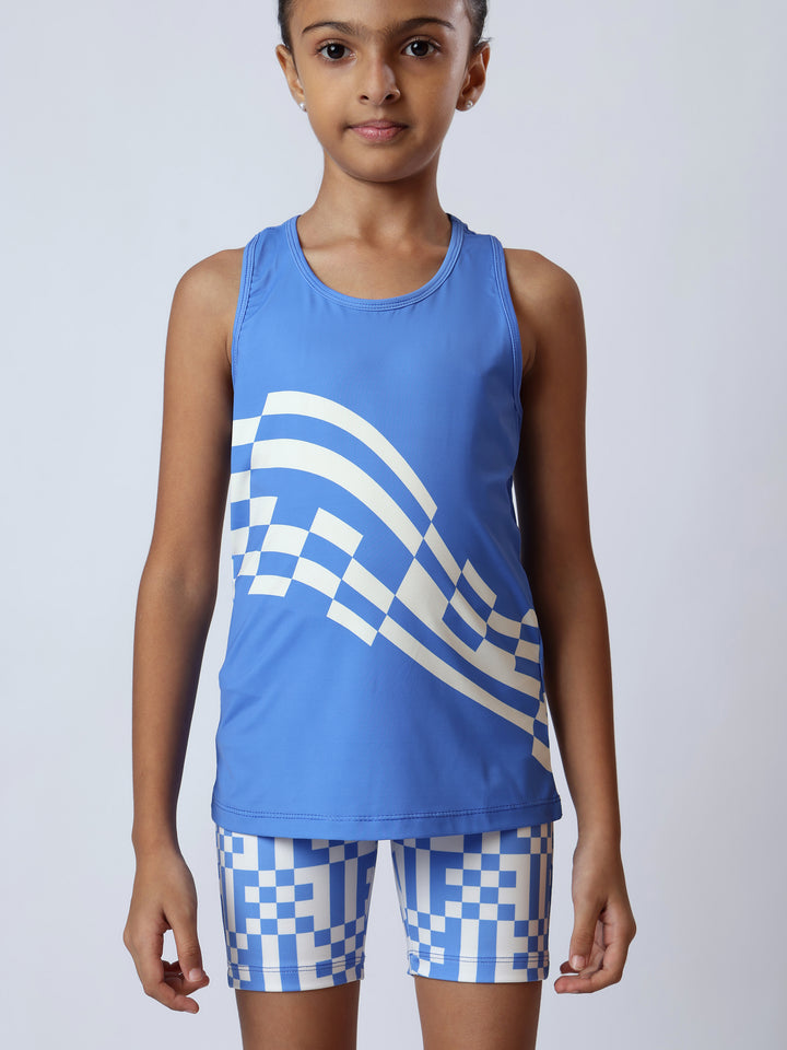 Get ready for fun and adventure with this Girls Blue Pixel Checks Tank and Cycling Shorts Set! Perfect for active days outdoors or sports, this comfy set keeps her cool and moving freely. The vibrant pixel check pattern adds a playful touch to her activewear collection. Whether she's cycling, running, or just playing, this set combines style and comfort effortlessly.