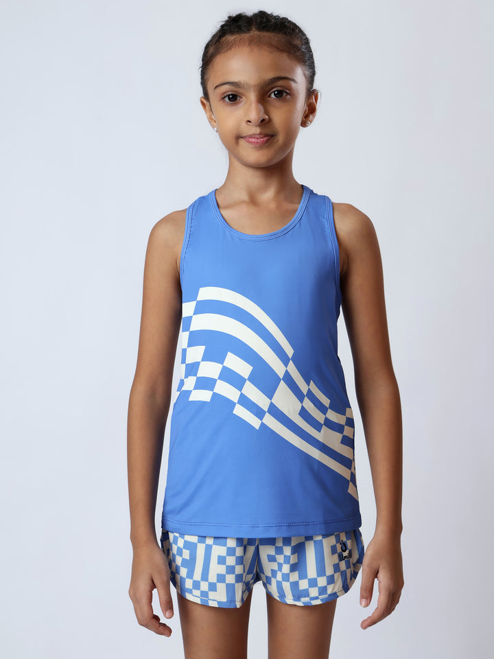 Get your little one ready for fun and adventure with the Girls Blue Pixel Checks Tanks Set. Perfect for active days outdoors or sports, this set combines playful style with all-day comfort. The breathable fabric keeps her cool while the vibrant pixel check pattern adds a splash of energy to every move. Ideal for running, jumping, and exploring, this tank set is her new go-to for active fun.
