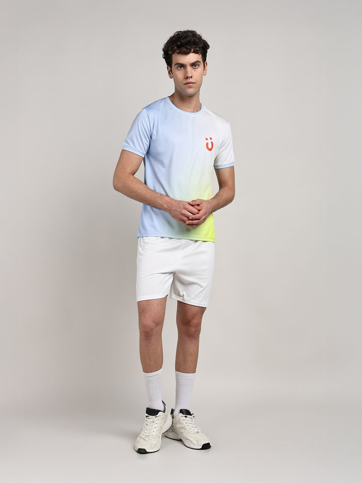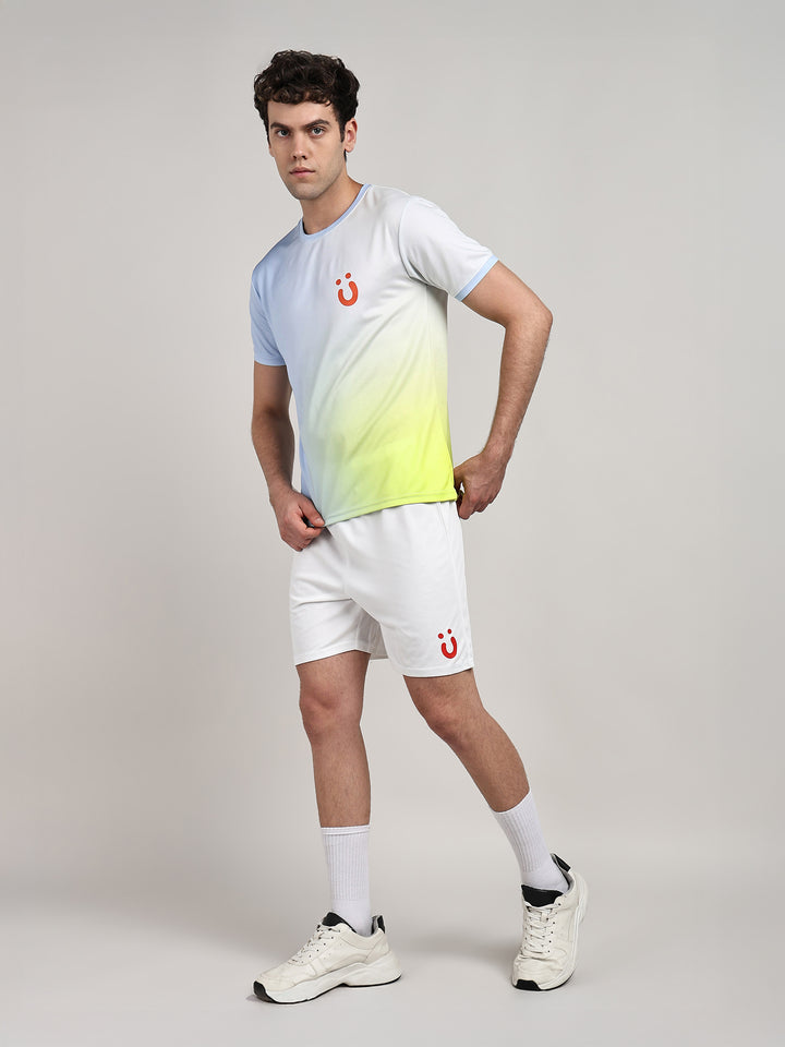 Mens Sunbeam Mist Tshirt And White Football Shorts With Black Logo Set